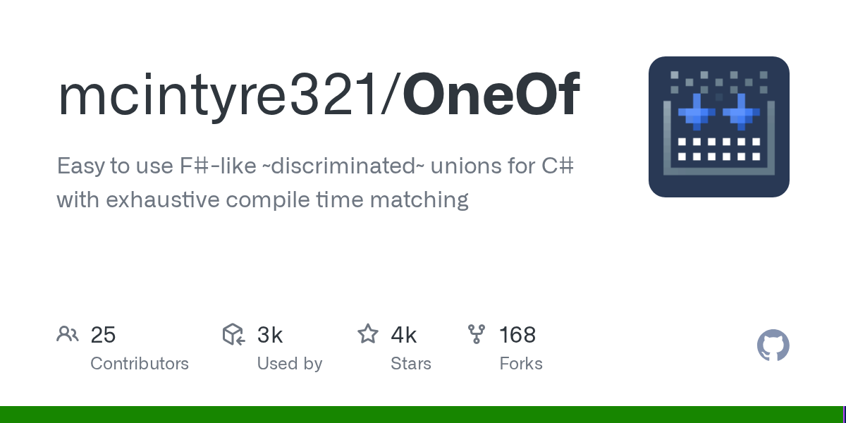 GitHub - mcintyre321/OneOf: Easy to use F#-like ~discriminated~ uni...