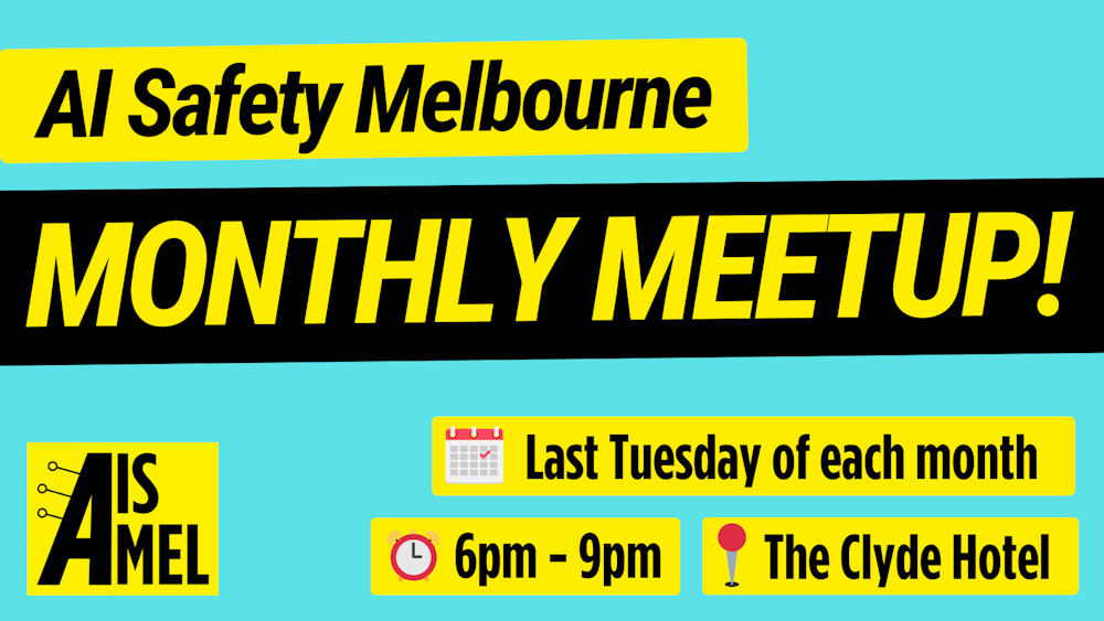 It is the last Tuesday of the month, which means the AI Safety Melbourne Monthly Meetup is on!