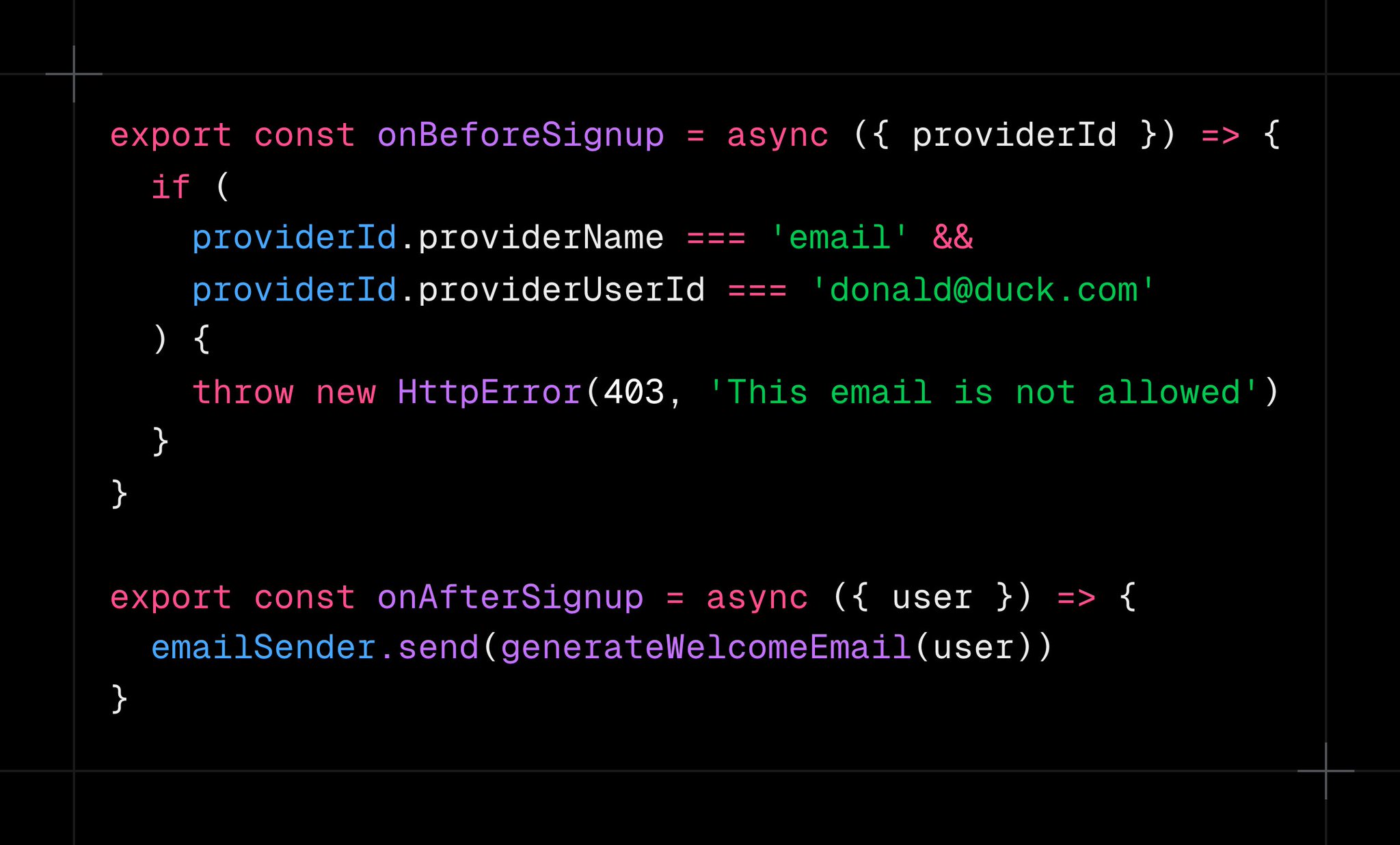 Starting with pre and post-signup hooks. They allow you to, e.g.: