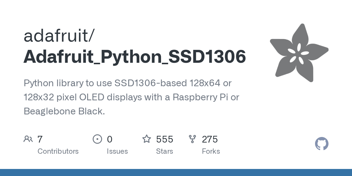 Adafruit OLED SSD1306 Library https://github.com/adafruit/Adafruit_Python_SSD1306