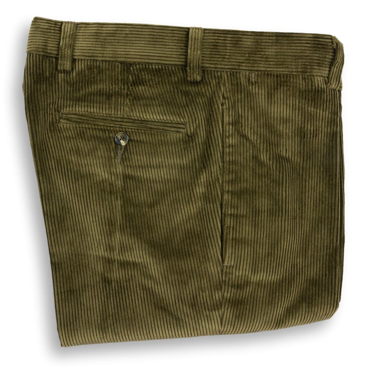 Our Corduroy trousers are the ideal pants for fall and winter. They can be paired with a sweater for a more relaxed look or worn with a button up for a more upscale look. Made from 100% cotton Brisbane Moss corduroy specifically for The Andover Shop. Sizing is based on a pant size 34, regular rise. Rise is measured fro