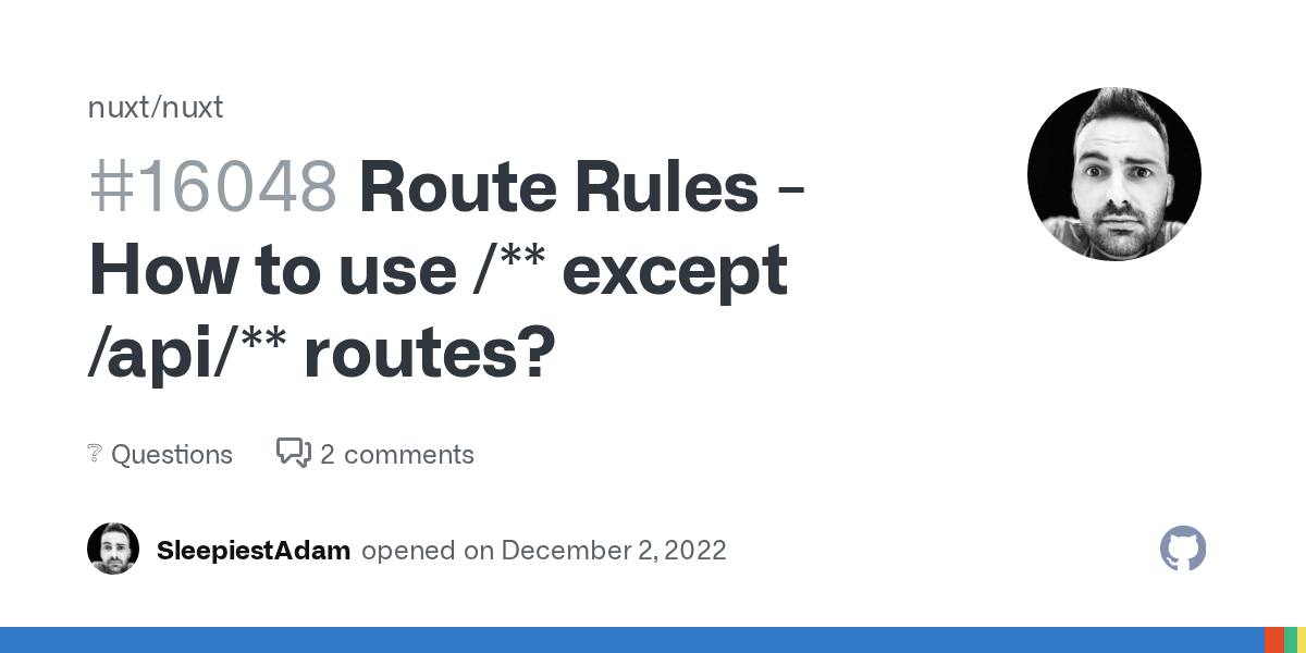I'm trying to essentially setup the following route rules whereby it doesn't statically render any API routes, but does statically render everything else. Unfortunately I'm running into...