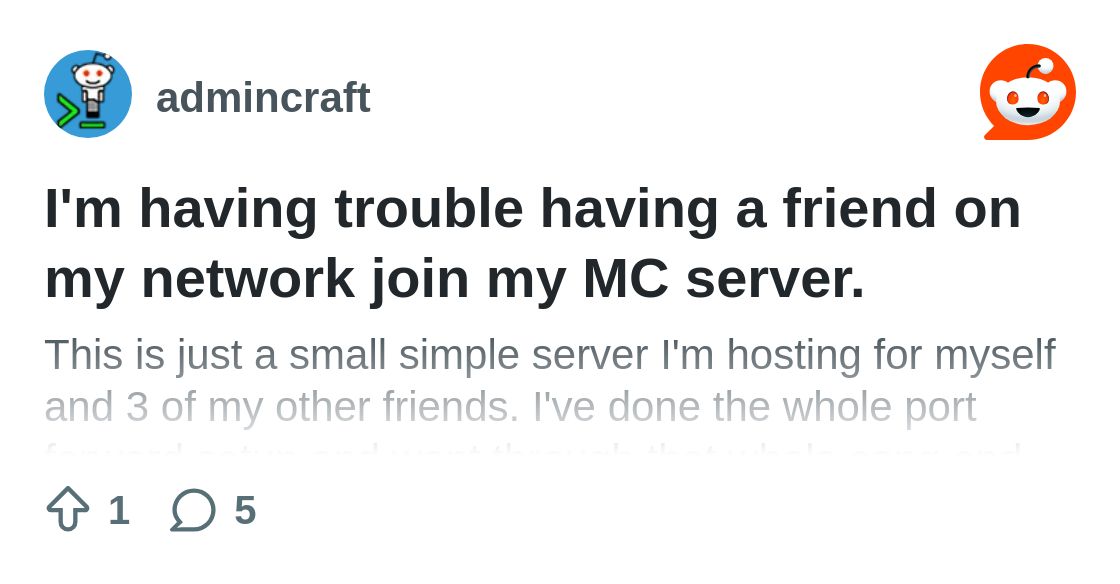 Here is the original post on reddit: https://www.reddit.com/r/admincraft/comments/1f7c3b3/im_having_trouble_having_a_friend_on_my_network/