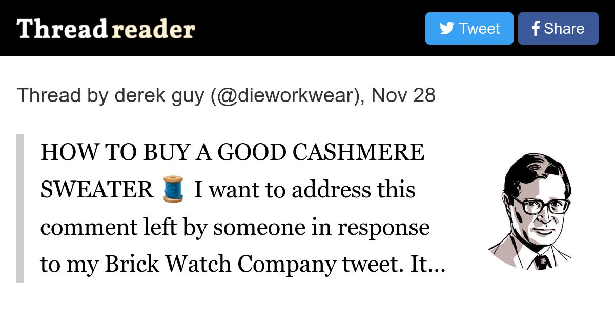 @dieworkwear: HOW TO BUY A GOOD CASHMERE SWEATER I want to address this comment left by someone in response to my Brick Watch Company tweet. It also gets into something I've been wanting to talk...