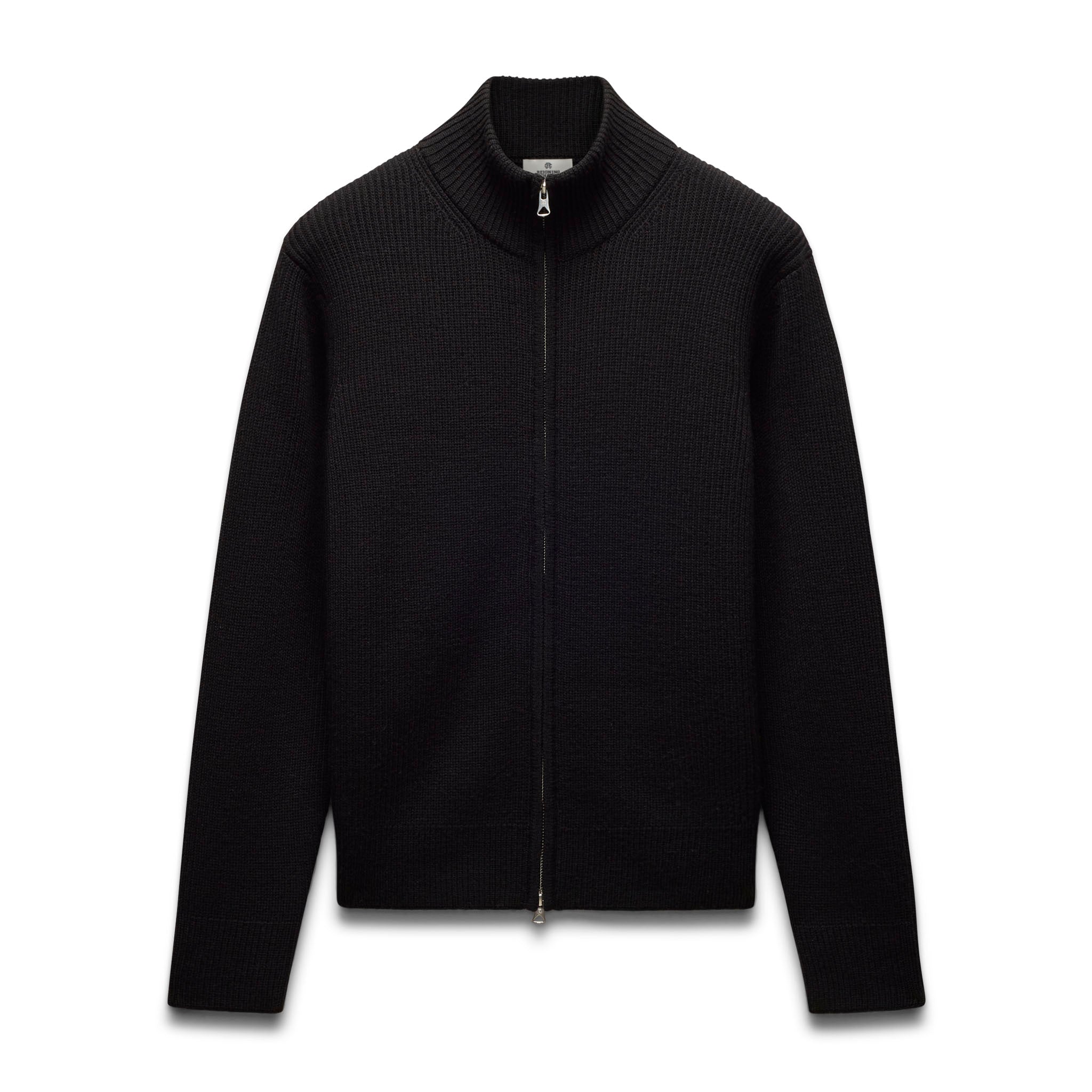 This mock neck zip up is crafted from premium merino wool milled in Italy. Featuring a standard fit, with fully fashioned seam construction. Designed with a convertible collar, a two-way YKK metal zip closure, and rib cuffs and