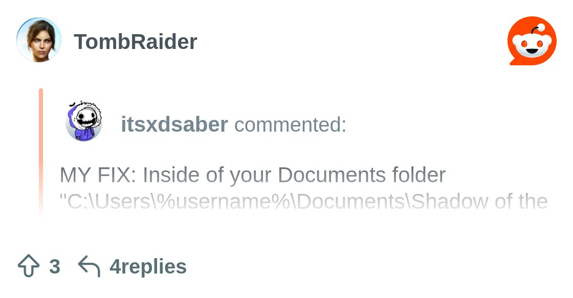 The fix is this: https://www.reddit.com/r/TombRaider/comments/rzpya1/comment/ln7vi6g/?utm_source=share&utm_medium=web3x&utm_name=web3xcss&utm_term=1&utm_content=share_button
