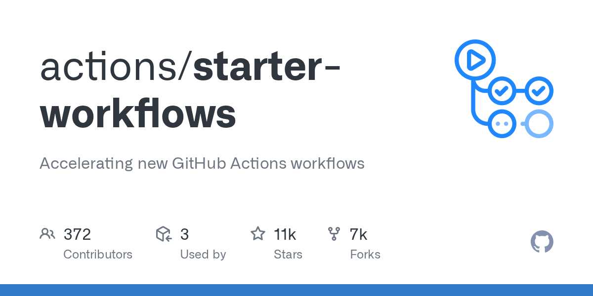Accelerating new GitHub Actions workflows . Contribute to actions/starter-workflows development by creating an account on GitHub.
