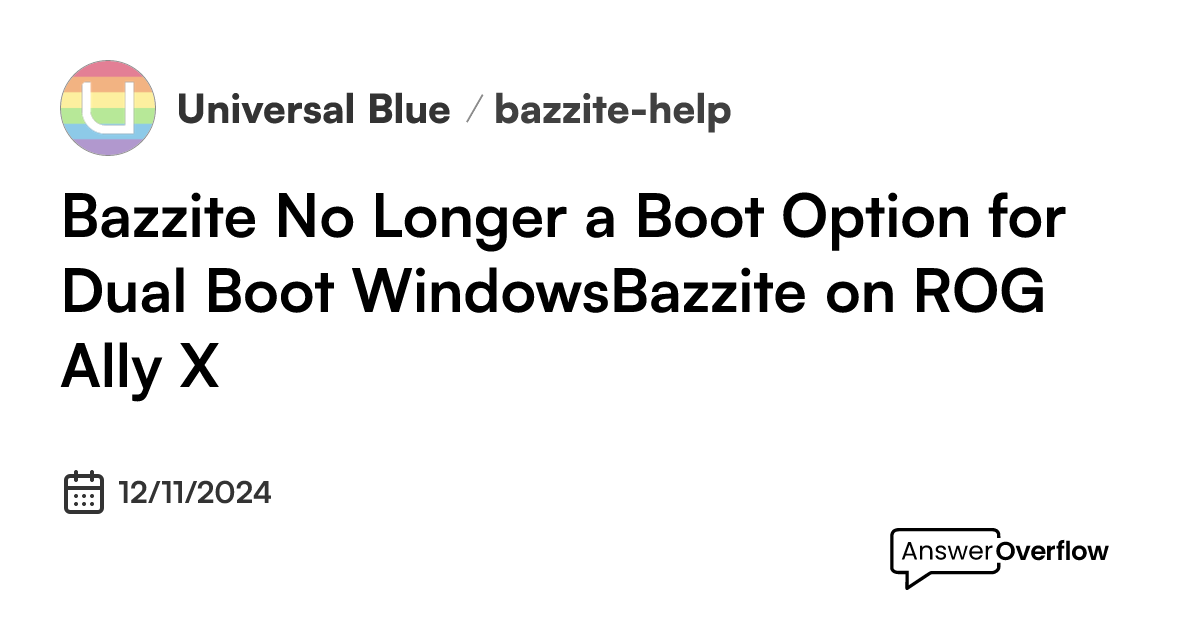 Hi, I set up dual boot Windows and Bazzite on my new Ally X a few weeks ago using a partitioned SSD. It was working great until last night I booted into Windows to play some games on that side. Maybe Windows applied some automatic updates that messed up how Bazzite boots, because now I can only boot into Windows. Fedora/Bazzite is no longer an o...