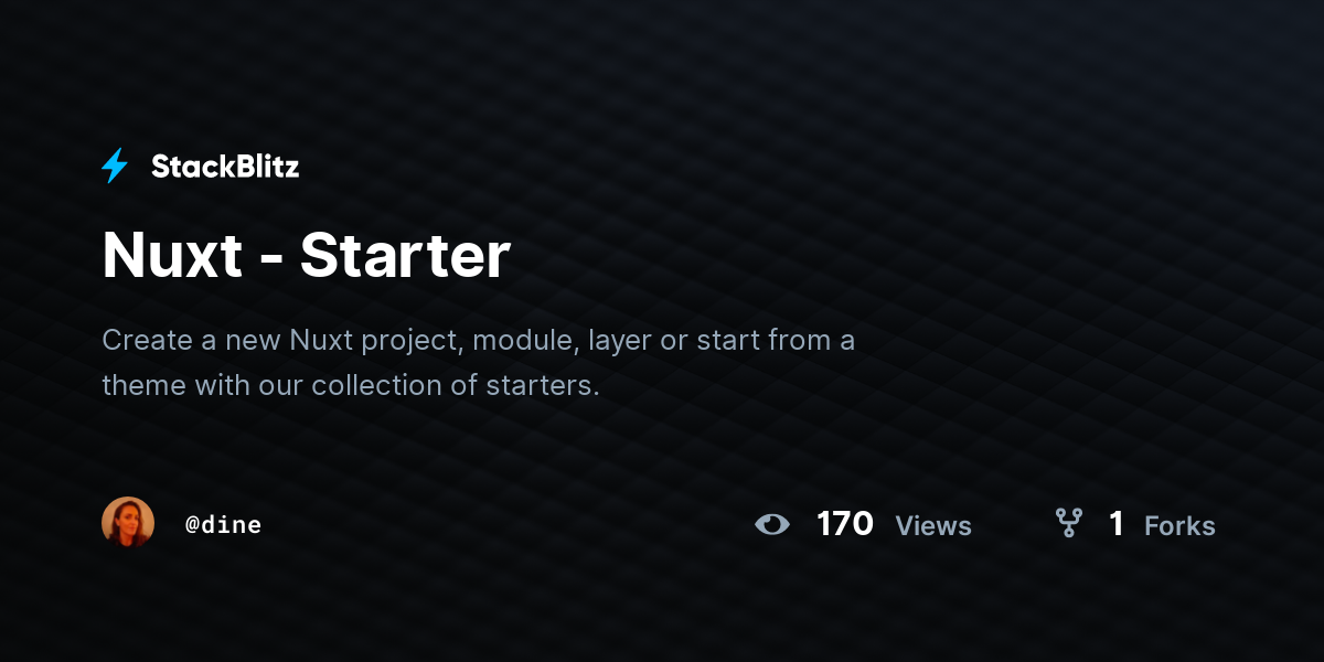 Create a new Nuxt project, module, layer or start from a theme with our collection of starters.