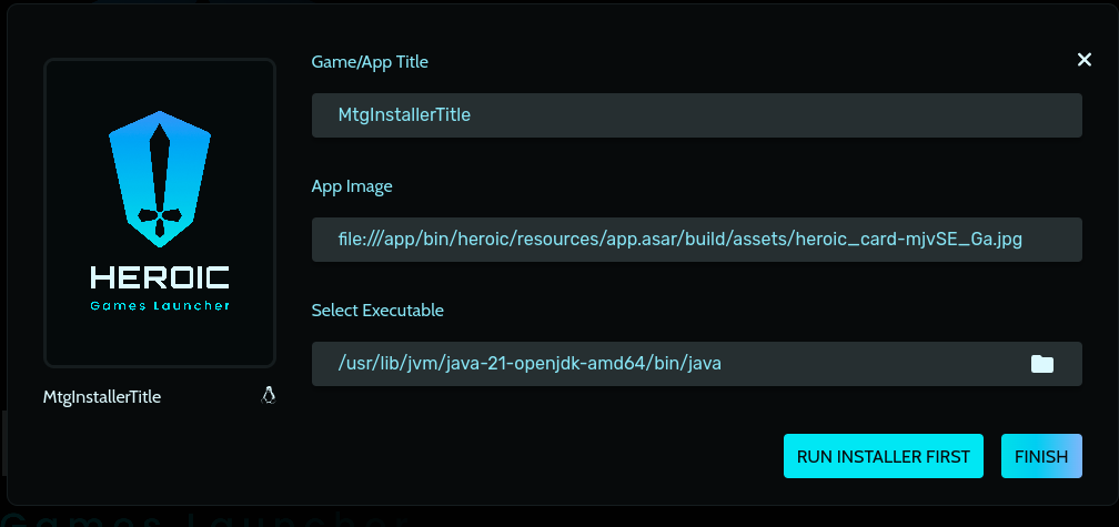 Is there a way to add a game to Heroic where the installation file is a .jar?