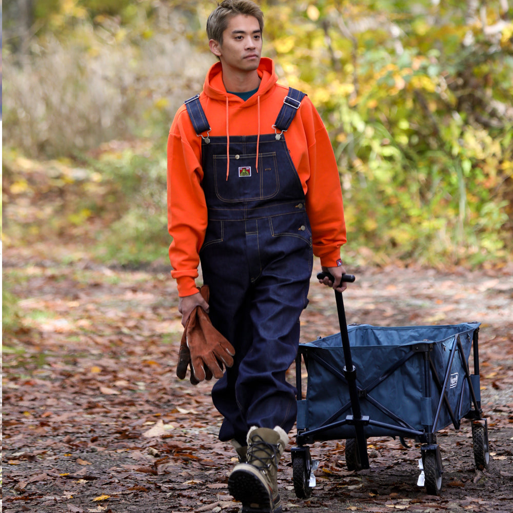素材を採用しています。クラシックな見た目ながら、伸縮するストレッチ素材なのでストレスフリー履いて頂けます。 肩の長さが調整可能なので、レディースでも着用可能です。 フロントセンターポケットはスナップボタン、ペンホルダーなど実用性の高い形に。 サイドポケットはBEN DAVISの特徴の一つ"Lポケット"仕様になっています。 バックには両サイドにポケットが二つ、ワークウェアらしいハンマーループやツールポケットも配置しています。 TシャツやロンTはもちろんパーカーと合わせれば、季節問わず使える便