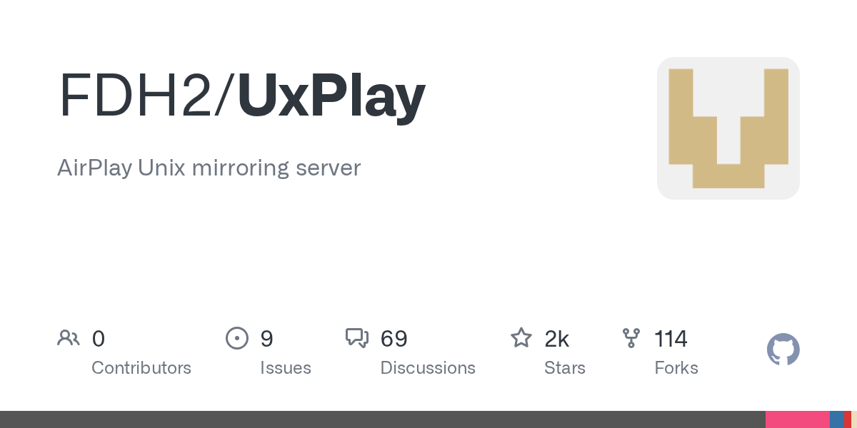 AirPlay Unix mirroring server. Contribute to FDH2/UxPlay development by creating an account on GitHub.