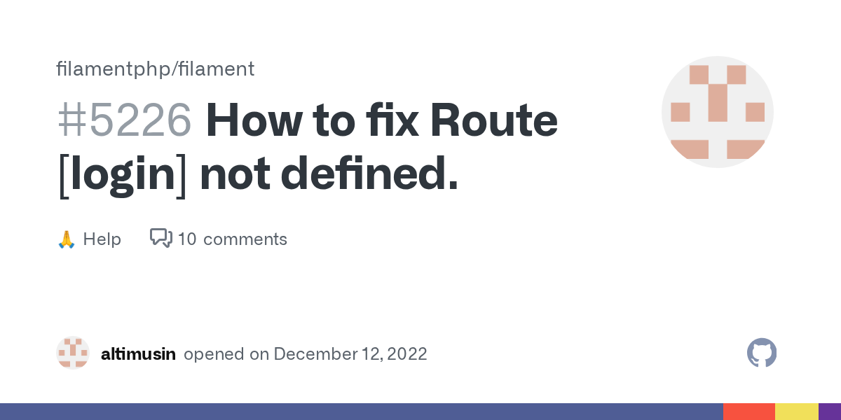 Hi All, How to fix Route [login] not defined. I'm using Filament Admin Breeze plugin (https://github.com/jeffgreco13/filament-breezy) My login page setting in filament config file. 'auth...