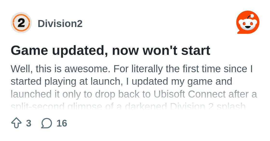 Division 2 no longer starts after today's update