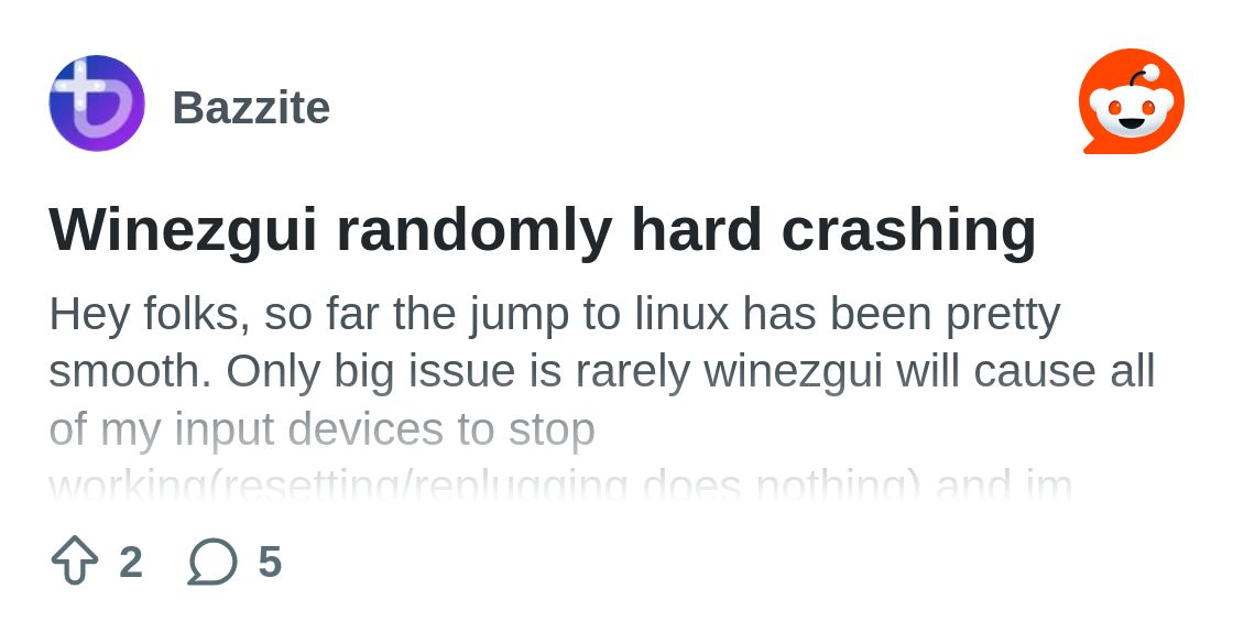 I made this post here: https://old.reddit.com/r/Bazzite/comments/1iygdza/winezgui_randomly_hard_crashing/