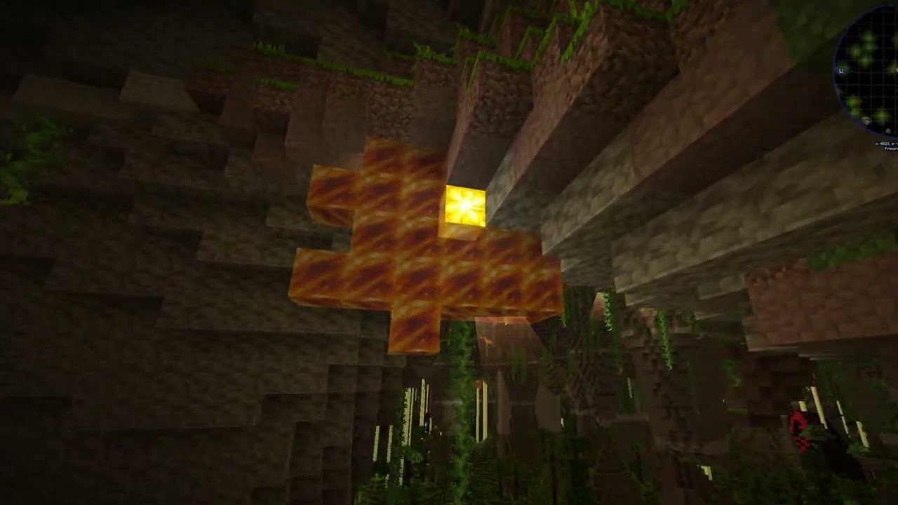 I'm having an odd issue with caves where these "pillars" appear in the LOD, and there's no geometry there that matches up with them for. I've disabled Cave Culling, as well as biome_ambient_light_coloring disabled in Alex's Caves config options. The columns appear to originate at the "Ambersol" light sources inside the crystals on the roof. See video: