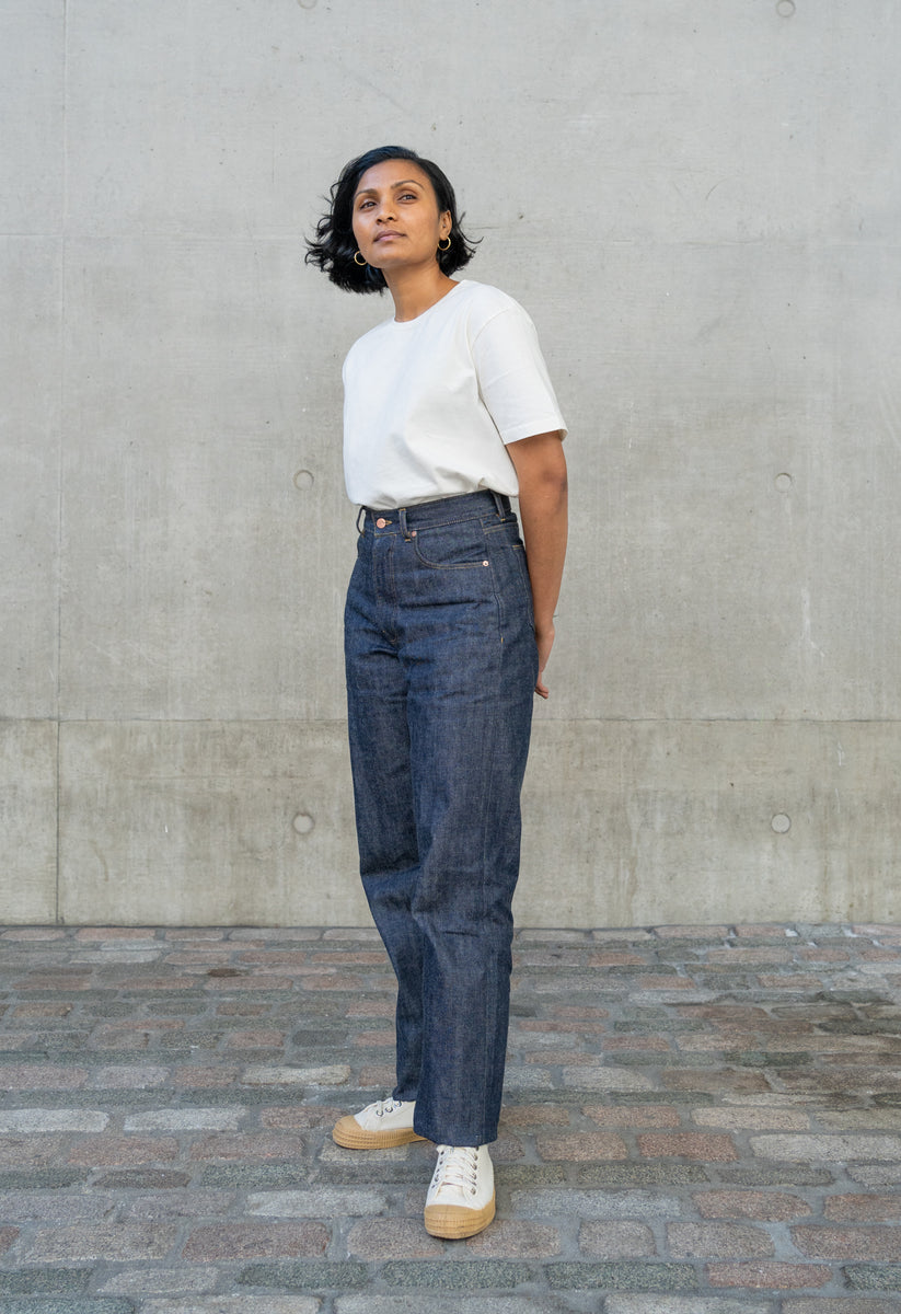Our E6 cut has a high rise, the waistband is slightly higher at the back allowing for comfort. This cut is a true straight leg with a very subtle taper. Perfect for anyone who wants a relaxed jean. This cut is suitable for those who are tall and slim as well as those who are athletic or looking for a wider leg.