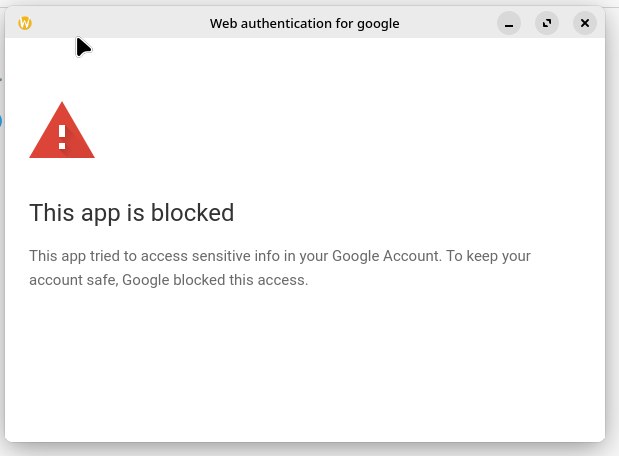 Under Bazzite System Settings > Online Accounts, I've added my gmail and it looks correctly connected. However under Dolphin > Network > Google I see "Access denied to ." when I click my connected Google account.