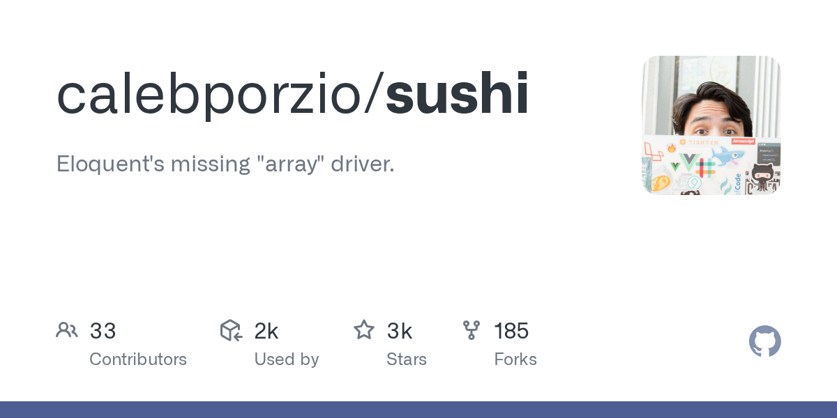 GitHub - calebporzio/sushi: Eloquent's missing "array" driver.