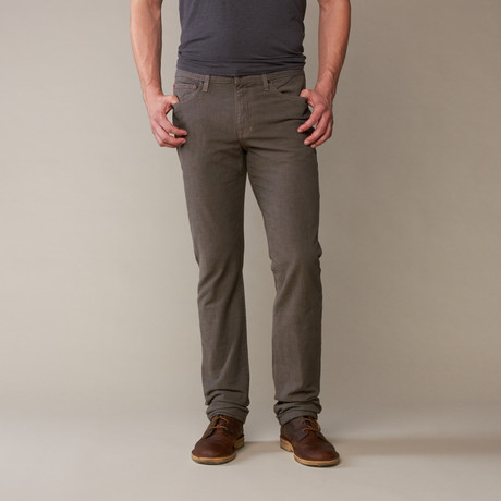 The Brixton is a tailored men's denim jean that always looks sharp. Narrow without being skinny, this straight-leg pant, with its brown-washed denim, is great to take from work to play.