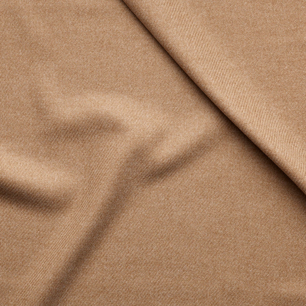 Mid-weight jacketing cloth with a superbly soft, warm handle in a camel twill. Designs range from large houndstooths, glenchecks, bold windowpanes and herringbones, in a collection of colours from forest green, chocolate, denim blue to graphite. 100% Fine Merino Woven in the ‘West of England’.