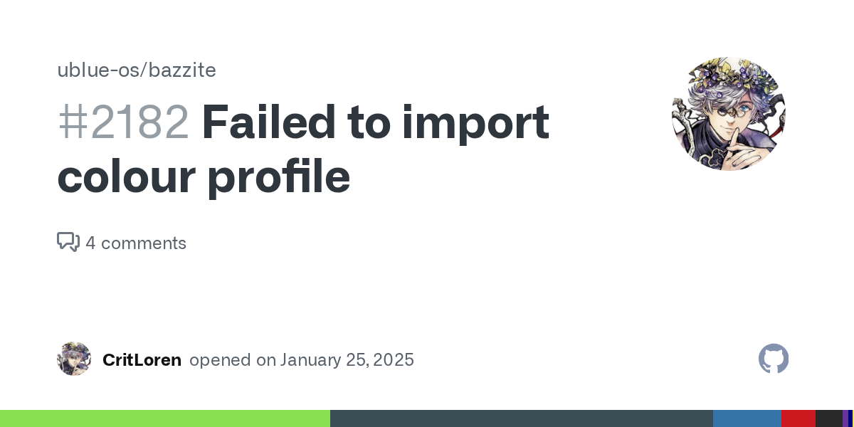 Describe the bug On the bazzite-nvidia-open image I cannot seem to be able to import ICC profiles. It will error with Failed to import colour profile: could not copy the file. If I try to manually ...