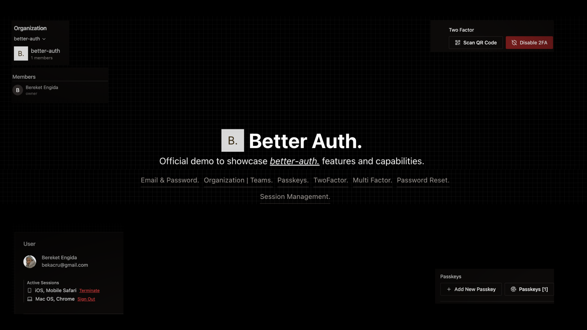 The demo site with Next and Better Auth is down and returns a 503 error on the client