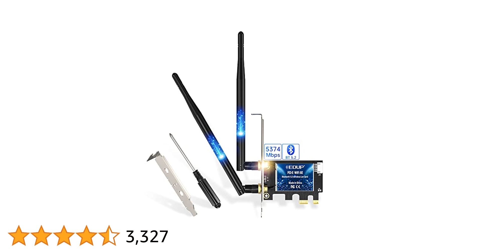 EDUP WiFi 6E Card Support 6GHz : The PCIE WiFi 6E Card Built-in Intel AX210 chipset provides the latest 802.11ax standard technology. Target Wake Time, delivers from 80MHz to 160MHz higher peak data rates up to 2.4Gbps, and up to 4X capacity improvement in dense or congested environments comparin...