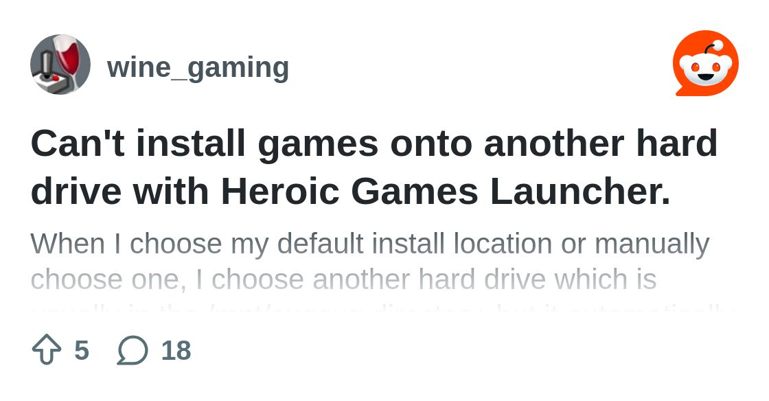 Hello please help me because i cant install games on another disk. I have disk HDD 1 TB and i want install games here not on my disk SSD 128 GB ( now 49/117 u can check on the image) Please help me i try this and nothing problem still .. and sorry for my bad english. https://www.reddit.com/r/wine_gaming/comments/uwkxoa/cant_install_games_onto_another_hard_drive_with/