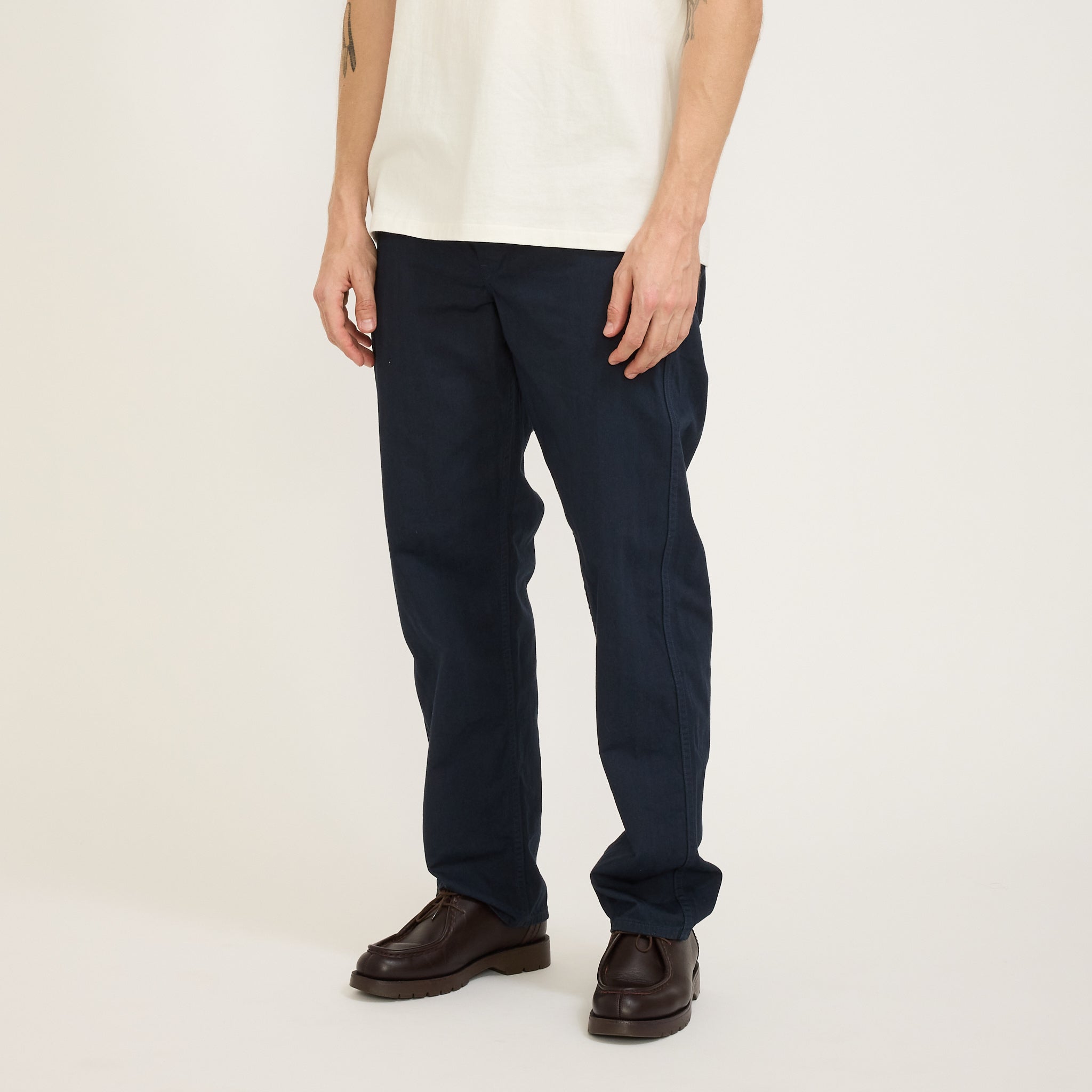 The French Work Pant from orSlow is cut from a 100% cotton herringbone twill that has a soft handle with true durability. Rear elastic to the waist with a flat front and button fly. Incredibly versatile shape with details and fit firmly entrenched in vintage workwear and equally suited to wearing higher or on waist for