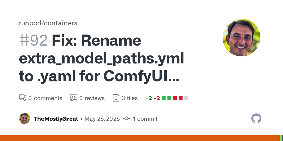 Currently, the comfy UI template isn't picking up the workspace/comfyui/models folder because the extra_model_path file has a .yml extension instead of a .yaml extension which is what comfy...