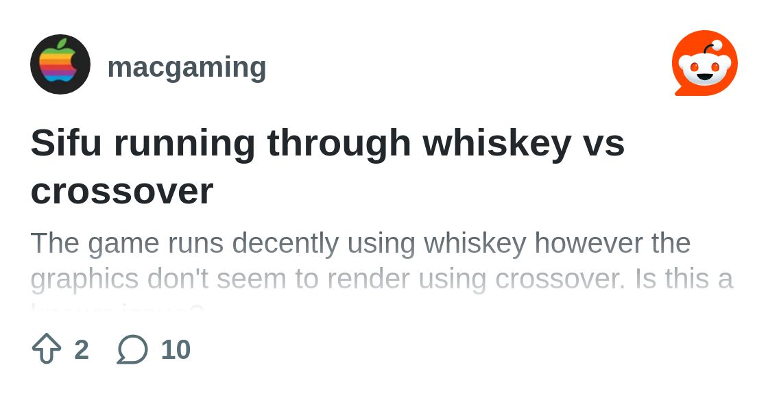 https://www.reddit.com/r/macgaming/comments/1chz899/sifu_running_through_whiskey_vs_crossover/
