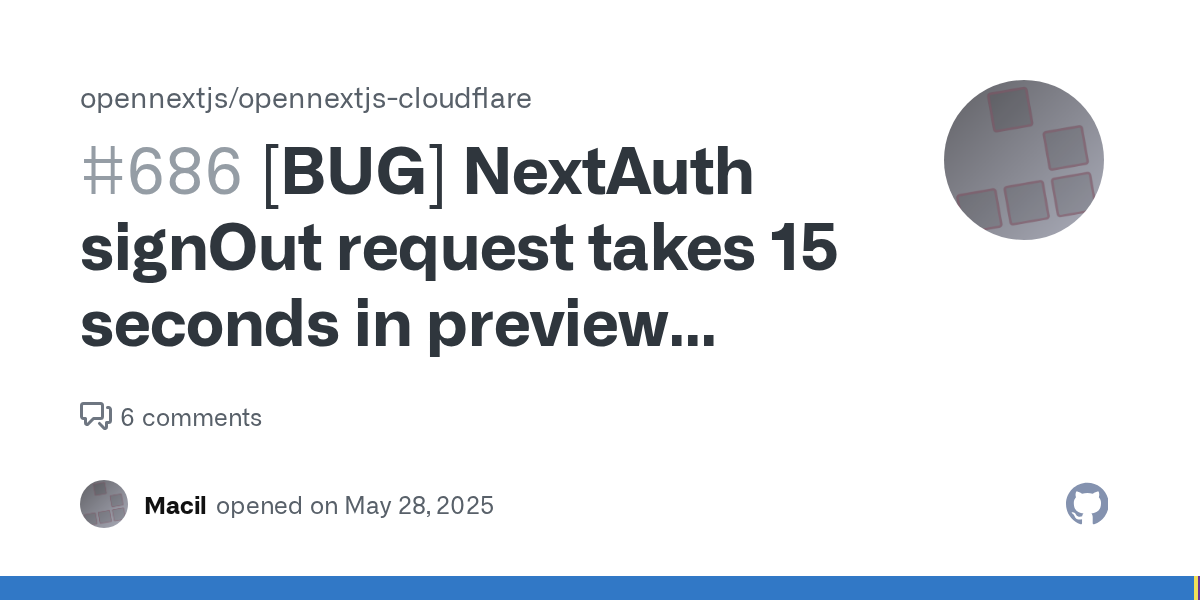 Describe the bug If you make a sign-out button with Auth.js/NextAuth and then use it while running your project with npm run preview (which uses Cloudflare wrangler and supports durable objects wit...