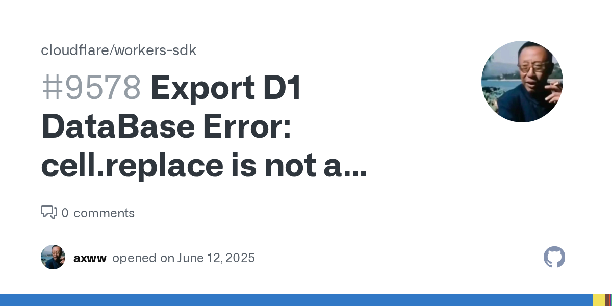 ce2951f0-9233-455a-942d-bf1ff6b93538d0238d3a1eebca7fc036cb766a5e538fError: D1_ERROR: Internal error while starting up D1 DB storage caused object to be reset.D1_ERROR: To execute a transaction, please use the state.storage.transaction() or state.storage.transactionSync() APIs ...