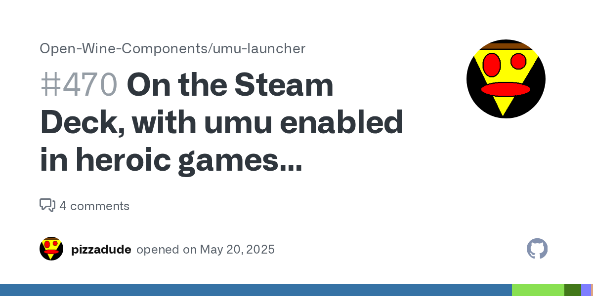 With umu enabled in heroic games launcher flatpak, steam deck UI (controller configuration, power menu, etc) disappears and the game is "always on top". It seems with umu enabled, on the ...