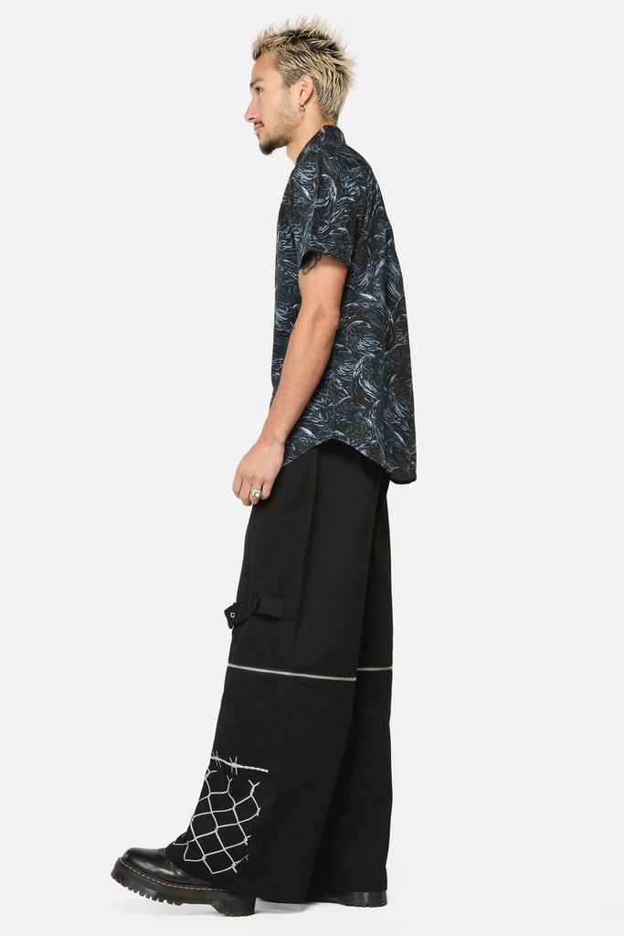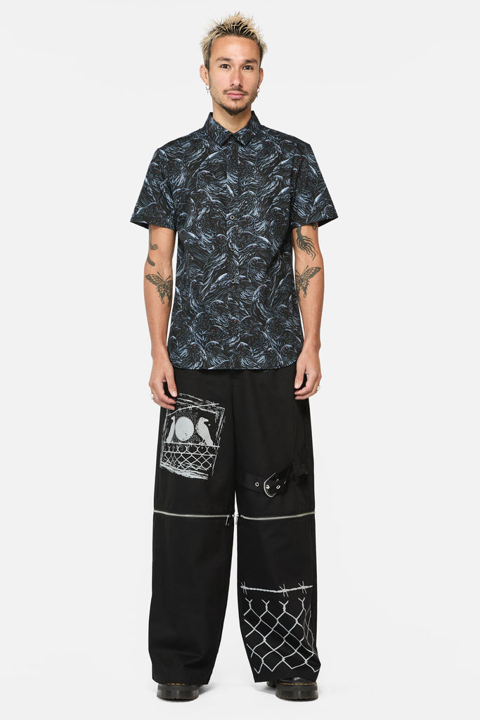 Printed Shirt - Fitted Shirt - Features 'Murder Of Crows' All Over Print - Shaped Collar - Button Front - Made From Cotton - Available In Black Product Code: BBFZ059