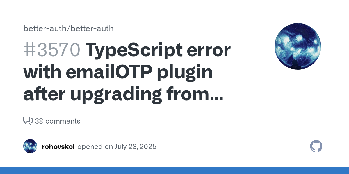 Is this suited for github? Yes, this is suited for github To Reproduce Summary After upgrading from Better Auth v1.2.12 to v1.3.3, the emailOTP plugin is causing a TypeScript error related to plugi...