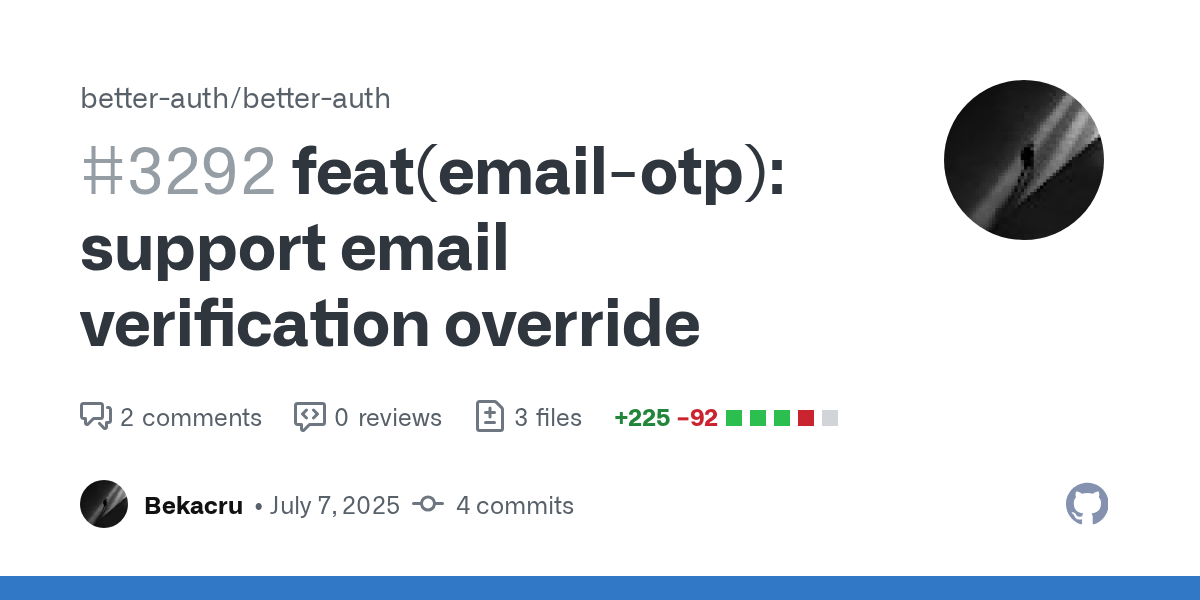 Describe the bug The auth.api.changeEmail() method requires options.user.changeEmail.sendChangeEmailVerification() to be set so that an email verification email containing a unique token can be sen...