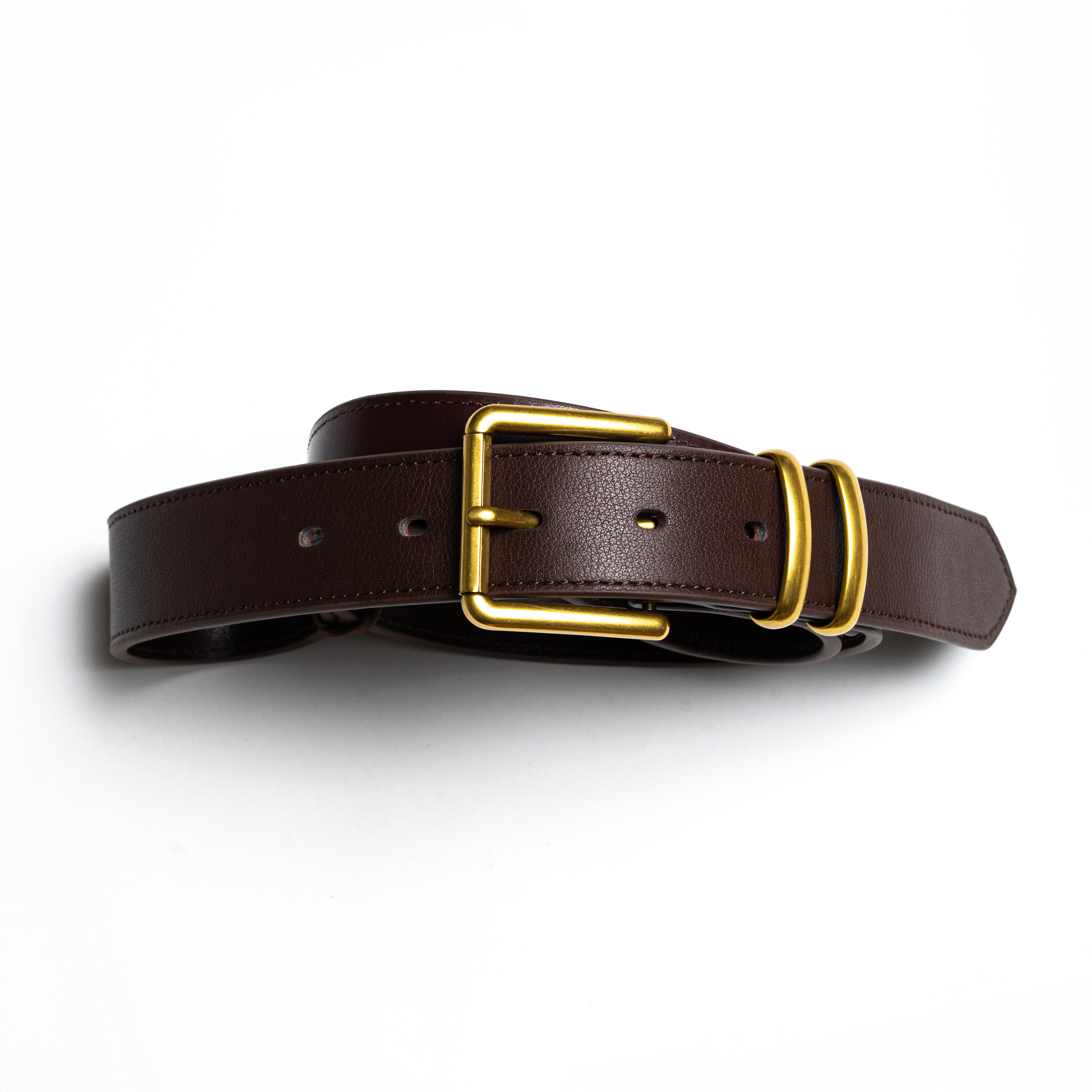 FNT 049 Full-grain Leather Belt We have brown and black belts available to be outfitted with any of our jeans and workpants. The brown belt features two metal 'keepers', 100% full grain leather. Belt sizing: please add 2 or more inches to your usual waist size (e.g. if you are a 32 inch waist, a 34+ belt is recommended