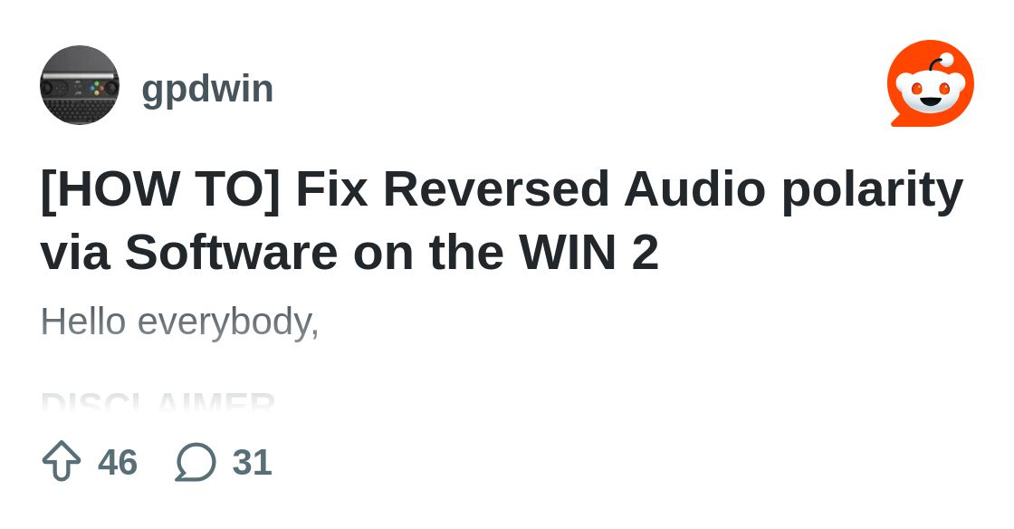 https://www.reddit.com/r/gpdwin/comments/8tr0ws/how_to_fix_reversed_audio_polarity_via_software/?utm_source=share&utm_medium=android_app&utm_name=androidcss&utm_term=1&utm_content=share_button