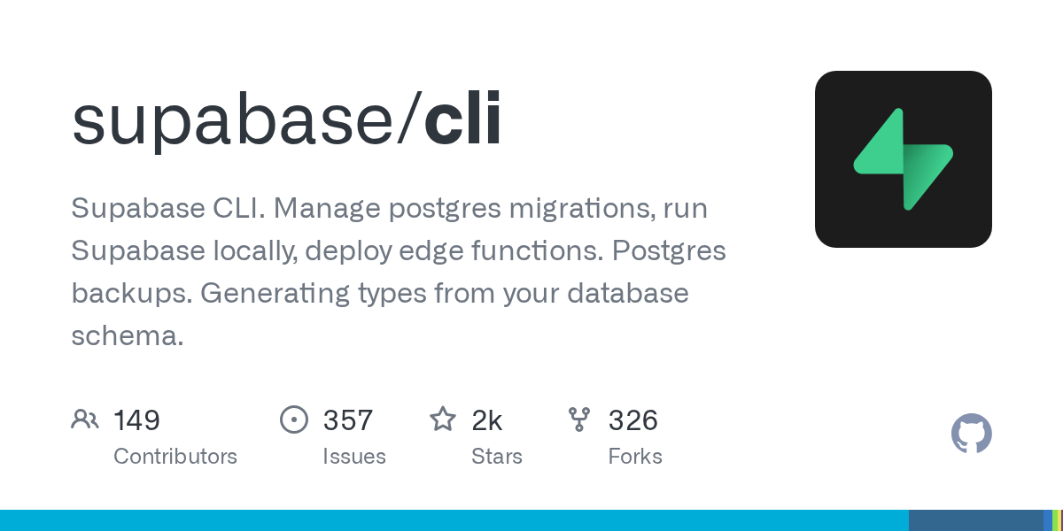 Supabase CLI. Manage postgres migrations, run Supabase locally, deploy edge functions. Postgres backups. Generating types from your database schema. - supabase/cli