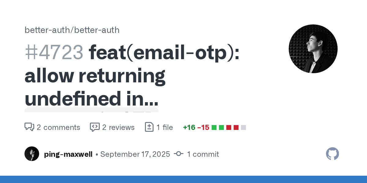 Right now you're forced to return an OTP value in the generateOTP function as part of the email-otp plugin. In some cases you may just want to return an OTP under a specific case, and just ...