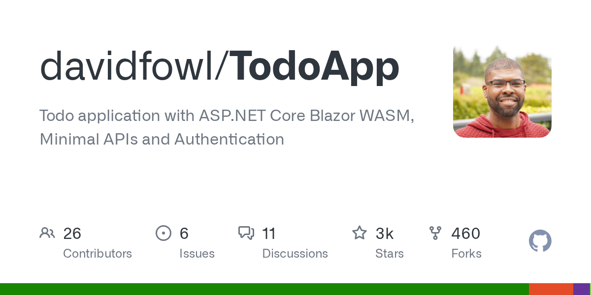 Todo application with ASP.NET Core Blazor WASM, Minimal APIs and Authentication - GitHub - davidfowl/TodoApp: Todo application with ASP.NET Core Blazor WASM, Minimal APIs and Authentication