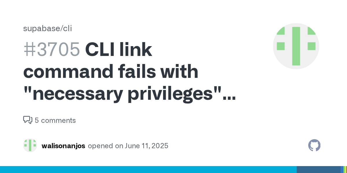 Hello Supabase Team, I'm encountering a persistent "privileges" error when trying to run npx supabase link for my project, even though I am the confirmed Owner of the project. Describ...