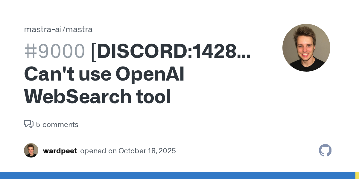 I can't seem to use OpenAI's WebSearch tool from the AI SDK. I get this error (cut off due to Discord's text limit):