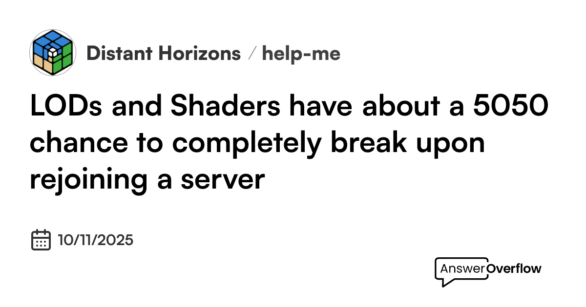 - I have seen this discussion of a similar but not identical problem. In my case, LOD chunks always load in regardless of the shader issue: https://www.answeroverflow.com/m/1426629987049406664