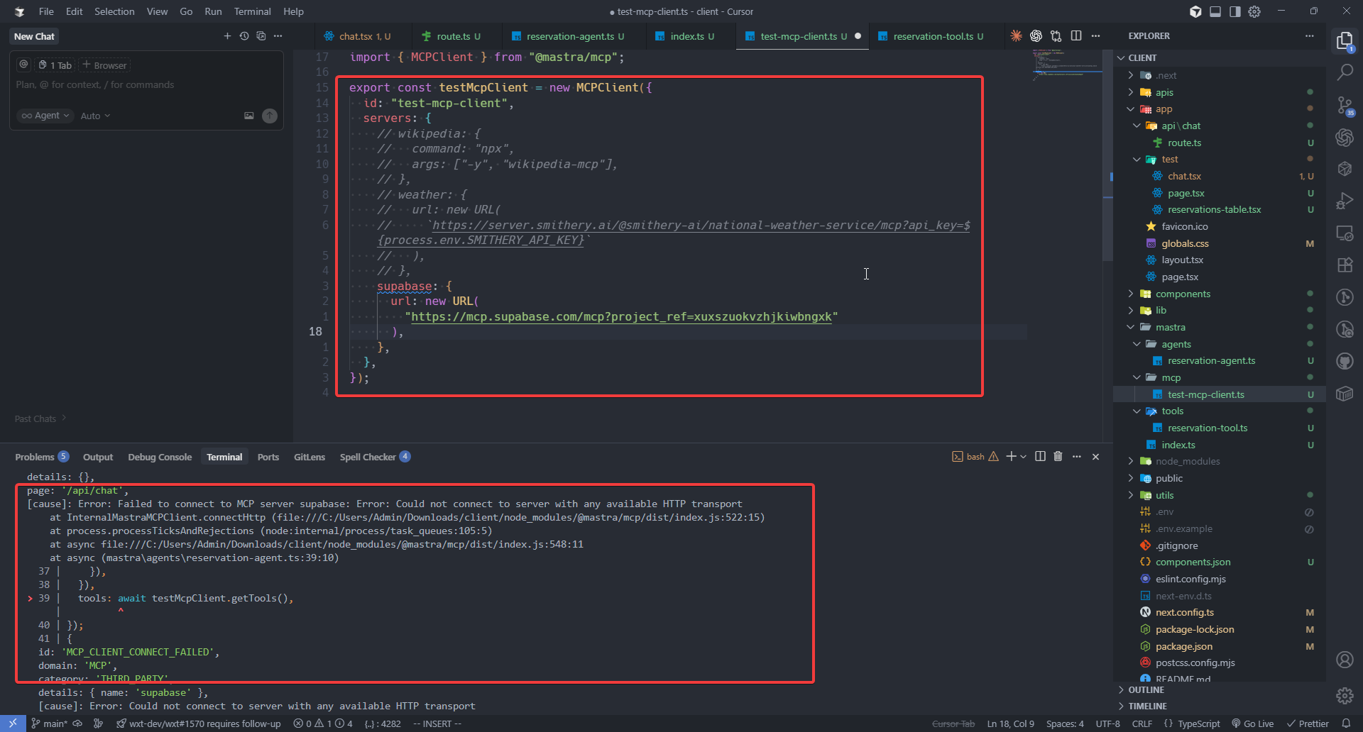 I've been facing this problem, where I want to integrate supabase mcp server in my mastra project and use supabase's tools with my agent.