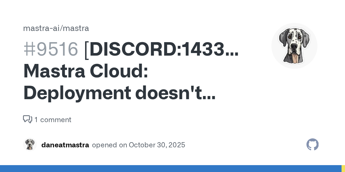 I've set up a new Mastra repo - it works locally, but deployment only shows the following error message.