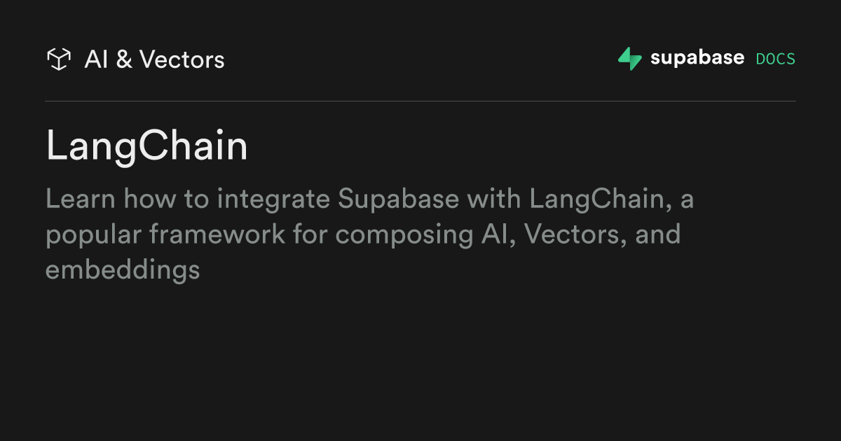 Learn how to integrate Supabase with LangChain, a popular framework for composing AI, Vectors, and embeddings