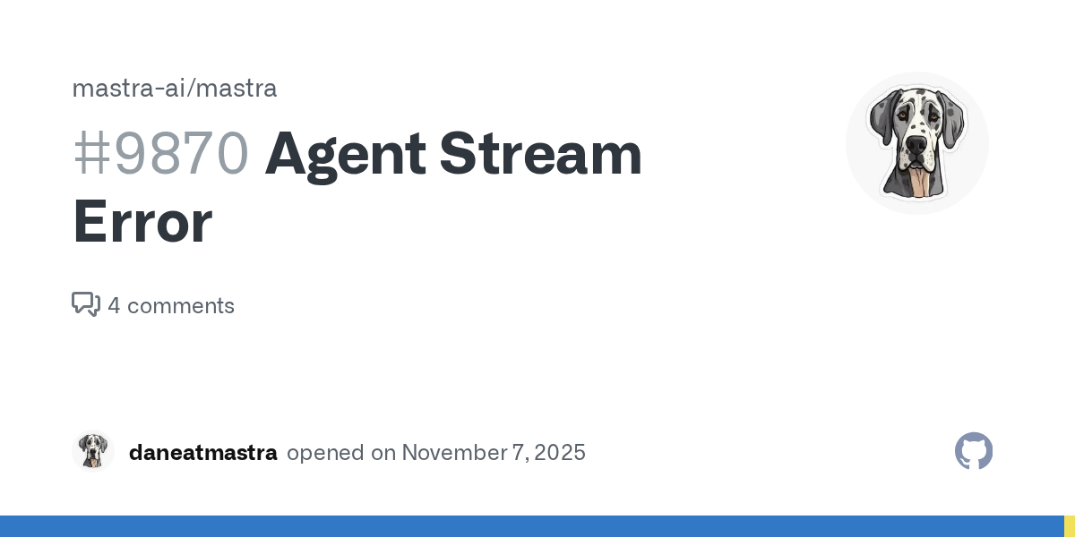 Agent Stream Error ยท Issue #9870 ยท mastra-ai/mastra